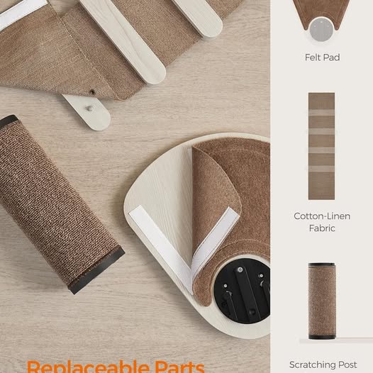 eandrea Clickat Collection - No.005 Cat Tree, Quick Assembly, Replaceable Parts, Modern Cat Tower with 4.1-Inch Dia. Thick Scratching Post, Cat Cave, 3 Perches, Soft Ladder, Cat Condo for Indoor Cats Product Dimensions 35.3"L x 15.7"W x 39.4"H Breed Recommendation All Breed Sizes Specific Uses For Product Active, Cat, Indoor Recommended Uses For Product Indoor Material Engineered Wood [All-in-One Playground] Featuring a cat cave with a cushion to hide and sleep in, multiple perches for observing and lounging, a scratch post and mat for sharpening claws, and a ladder to climb and explore, this multifunctional cat tree offers endless fun [Roomy Space] This 39.4" tall cat tower for indoor cats features 2 tiers, providing abundant space for multiple furry friends to explore, relax, and play together [Modern Aesthetic] Inspired by modern furniture, incorporating cubic and rounded design elements, this cat condo is simple yet elegant and easily blends with your home decor [Expandable] The modern cat tree can be used with other Clickat cat wall furniture to extend your cat's play space from the floor to the wall, unlocking new ways to explore and have fun [Replaceable Parts] The scratching post is made in segments, each being easy to remove and replace with a simple pull and push. The felt pads and ladder fabric are fitted with hook-and-loop fasteners to easily detach, replace, or clean